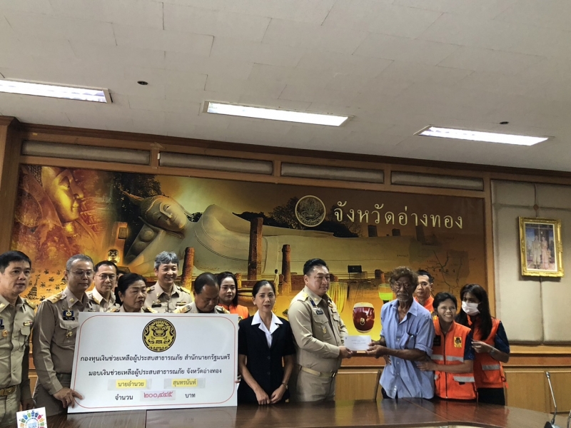 รับมอบถุงยังชีพเครื่องอุปโภคบริโภค ที่ได้รับการสนับสนุนจากองค์การบริหารส่วนจังหวัดอ่างทองให้แก่ผู้ประสบอุทกภัยในพื้นที่ ...