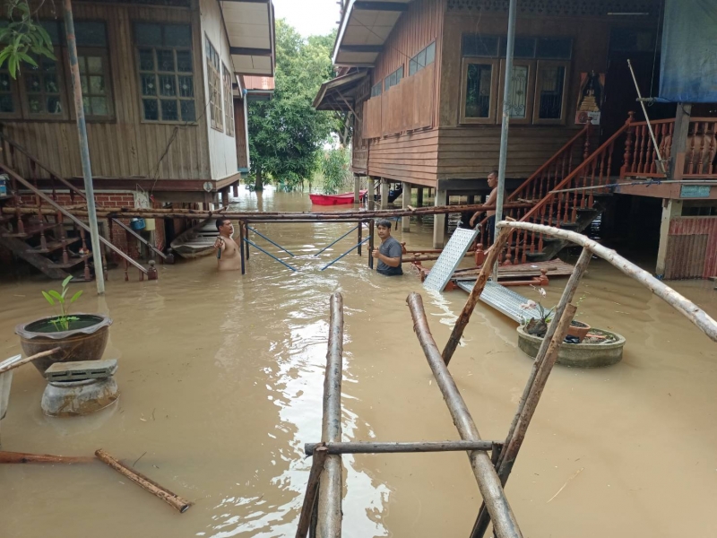 ลงพื้นที่ดำเนินการเสริมสะพานทางเดินให้กับบ้านเรือนผู้ประสบอุทกภัย...