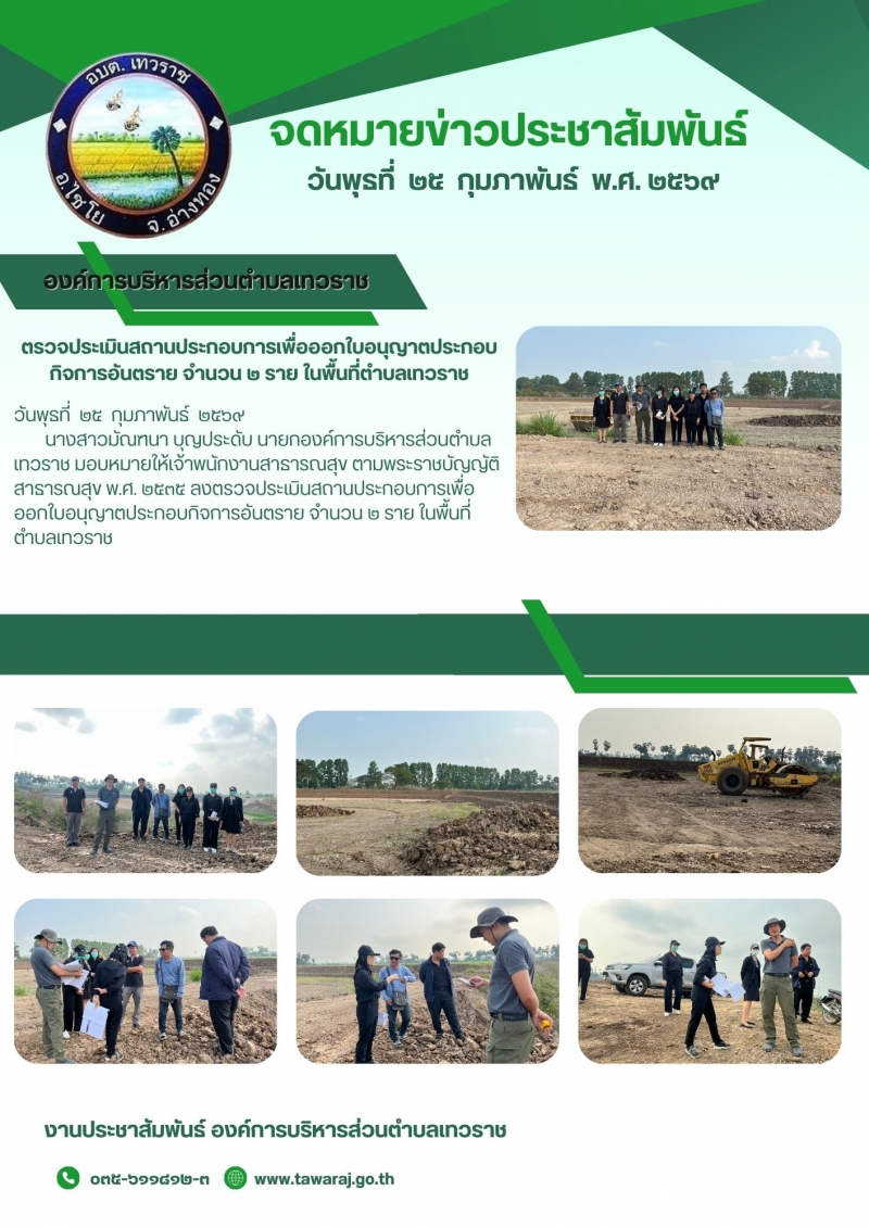 ลงพื้นที่ตรวจประเมินสถานประกอบการเพื่อออกใบอนุญาตประกอบกิจการอันตราย จำนวน ๒ ราย ในพื้นที่ตำบลเทวราช...
