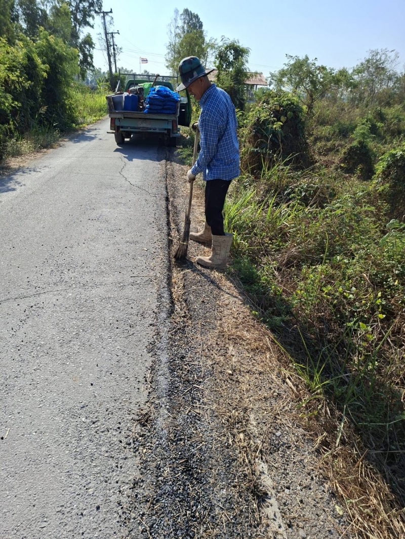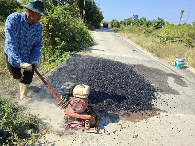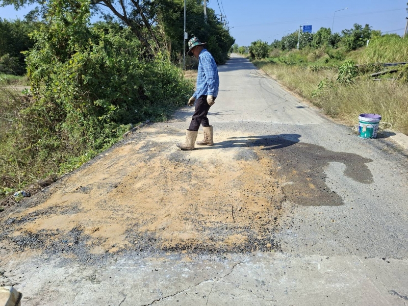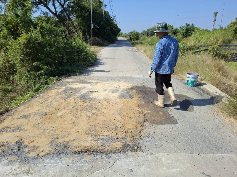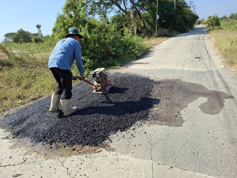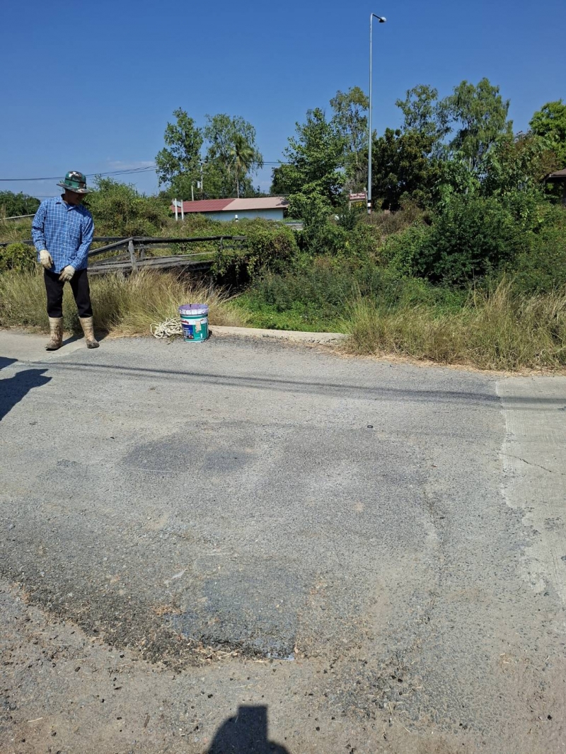 ดำเนินการซ่อมแซมผิวถนนบริเวณ หมู่ที่ ๗ ตำบลเทวราช