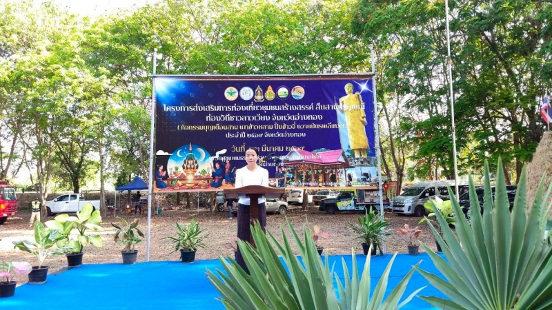 โดยมี นางสาวสุกัญญา กุลสุวรรณ์ ปลัดจังหวัดอ่างทอง ประธานพิธีเปิดกิจกรรม เป็นโครงการส่งเสริมการท่องเที่ยวชุมชนสร้างสรรค์ สืบสานประเพณีท่องวิถีชาวลาวเวียง จังหวัดอ่างทอง ที่ วัดศุขเกษมธรรมิการาม ม.๑ ต.เทวราช อ.ไชโย