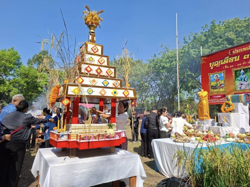 การถวายบัตรพลีเทวดา พิธีบายศรีสู่ขวัญพระแม่โพสพ และการอัญเชิญพญาแถนและพญาคันคากตามความเชื่อดั้งเดิม