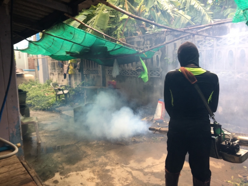 นางสาวมัณฑนา บุญประดับ นายกองค์การบริหารส่วนตำบลเทวราช มอบหมายให้นายศักดิ์ชัย โพธิ์ศรี รองนายกฯ พร้อมเจ้าหน้าที่ โรงพยาบาลส่งเสริมสุขภาพตำบลเทวราช ผู้นำท้องที่ และ อสม.หมู่ที่ 4 ตำบลเทวราช ลงพื้นที่ดำเนินการฉีดพ่นหมอกควันกำจัดยุงลาย เพื่อควบคุมการระบาดของโรคไข้เลือดออก และลดจำนวนอัตราป่วยด้วยโรคไข้เลือดออก หมู่ 4 ตำบลเทวราช เนื่องจากพบผู้ป่วยเป็นไข้เลือดออก
