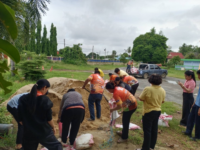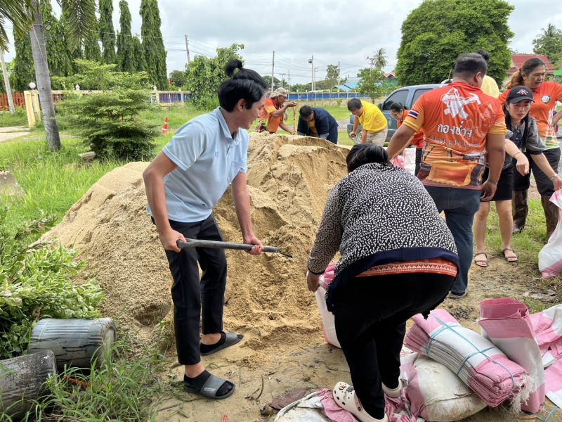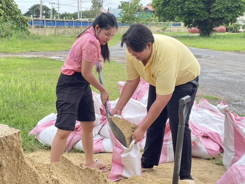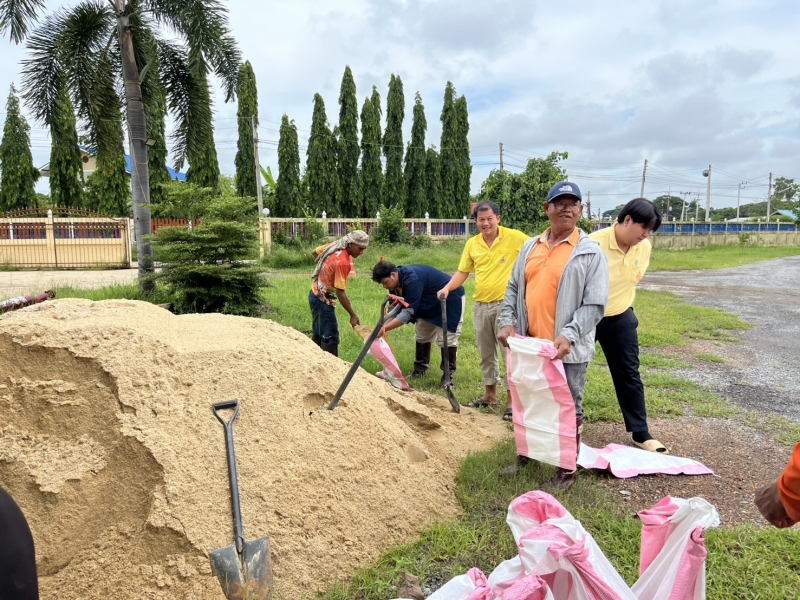 นางสาวมัณฑนา บุญประดับ นายกองค์การบริหารส่วนตำบลเทวราช พร้อมด้วยคณะผู้บริหาร เจ้าหน้าที่องค์การบริหารส่วนตำบลเทวราช ร่วมดำเนินการบรรจุทรายใส่กระสอบ ปิดรอยทางน้ำไหลใต้เขื่อนบริเวณ หมู่ที่ 4 ตำบลเทวราช เพื่อป้องกันน้ำท่วมซึมเข้าบ้านเรือน และบรรเทาความเดือดร้อนให้แก่ประชาชนที่อยู่ติดริมแม่น้ำเจ้าพระยาที่ได้รับผลกระทบจากสถานการณ์น้ำที่เพิ่มขึ้น