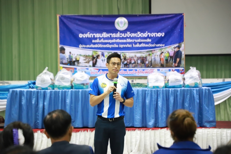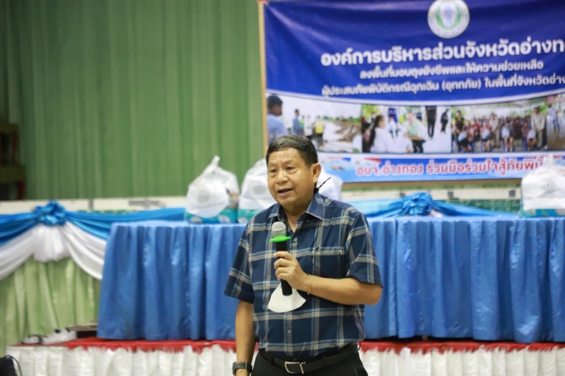 ในการนี้ ผู้บริหารจังหวัดอ่างทองได้ร่วมมอบถุงยังชีพ และพูดคุยให้กำลังใจกับประชาชนที่ได้รับผลกระทบ และพร้อมจะเยียวยาดูแลประชาชนที่ได้รับผลกระทบอย่างทั่วถึงต่อไป