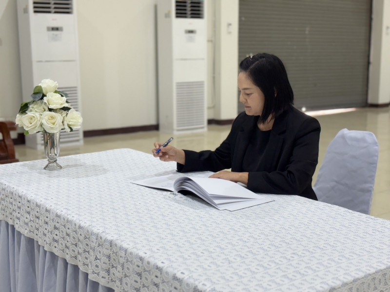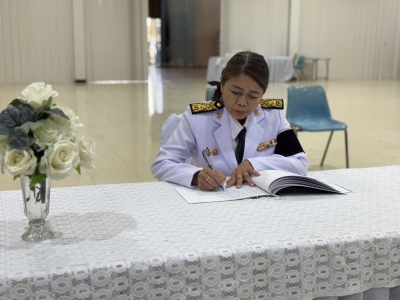 นางสาวมัณฑนา บุญประดับ นายกองค์การบริหารส่วนตำบลเทวราช พร้อมด้วยนางสาวพิไลวรรณ โตสวัสดิ์ ปลัดฯ และเจ้าหน้าที่องค์การบริหารส่วนตำบลเทวราช ร่วมพิธีถวายน้ำสรงพระบรมศพเบื้องหน้าพระฉายาลักษณ์สมเด็จพระนางเจ้าสิริกิติ์ พระบรมราชินีนาถ พระบรมราชชนนีพันปีหลวง พร้อมลงนามแสดงความไว้อาลัย