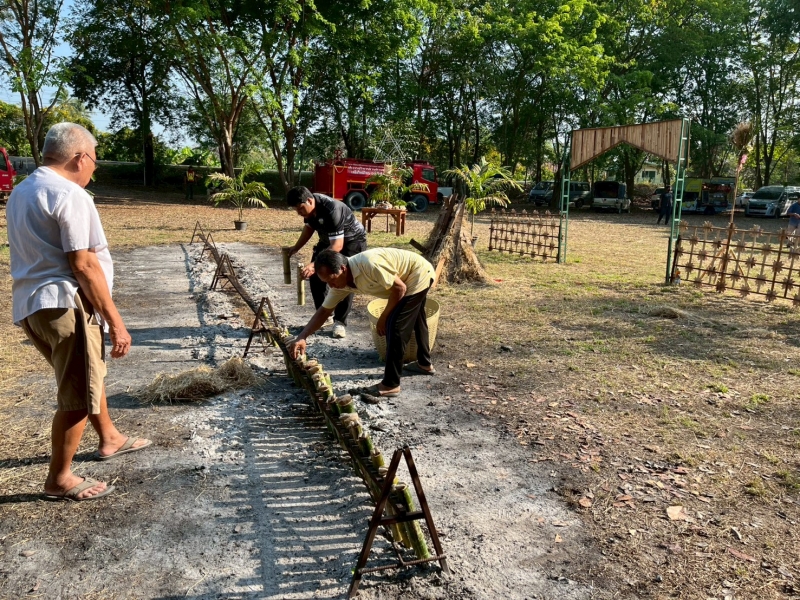 การทำข้าวจี่และเผาข้าวหลาม เพื่อนำไปถวายพระและแจกจ่ายแก่ผู้ร่วมงาน